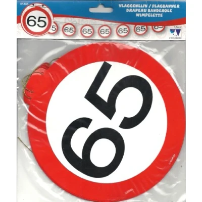 65th birthday traffic sign garland. Contents: 1 sign garland and is made of paper. The article is 12 m long and multi coloured. These are perfect for a birthday and anniversary and theme party. Folat has a wide range of interesting party products and all created in accordance with European safety standards.We deliver smiles., Manufacturer: Creative