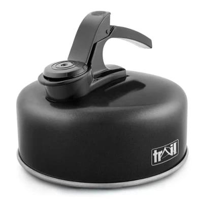 ALUMINIUM WHISTLING CAMPING KETTLE (1000ml): Enjoy a cuppa on camping trips with this 1L Aluminium Whistling Camping Kettle from Trail. Boasts a 1000ml capacity to make 4-5 cups (approx.), making it great for group and family camping. Plus, perfect for hiking, backpacking, festivals, and more. SUITABLE FOR ALL HOBS, EXCEPT INDUCTION: Portable kettle is suitable for using on all types of hob, except for induction hobs. Perfect for using on a portable gas or electric camping stove. Plus, ideal for using in campervans, motorhomes, and caravans with gas or electric hobs. Also suitable for home use. LIGHTWEIGHT ALUMINIUM CONSTRUCTION: Made from durable, lightweight aluminium with a stylish black finish. Designed with a flat, circular base which evenly distributes heat for faster boiling. So, less time waiting for it to boil and less fuel used. Also, it's rust-resistant and easy to rinse and wipe clean when dirty. WHISTLING SPOUT WITH PUSH MECHANSIM: Spout makes a loud whistling sound when the kettle has finished boiling. So, you can easily tell when it's ready without the risk of it overboiling. Features a push mechanism to easily open the spout and shaped for precise, easy pouring to safeguard from spillages. ERGONOMIC HEAT RESISTANT HANDLE: Handle ergonomically designed for a firm, comfy grip when picking up and pouring. Plus, it's heat-resistant to safely pick the kettle up, even when it's boiling hot. Kettle measures 15cm x 16cm (including handle) and weighs 0.2kg, making it compact and lightweight to carry., Weight: 0.440924524 pounds, Manufacturer: Trail Outdoor Leisure