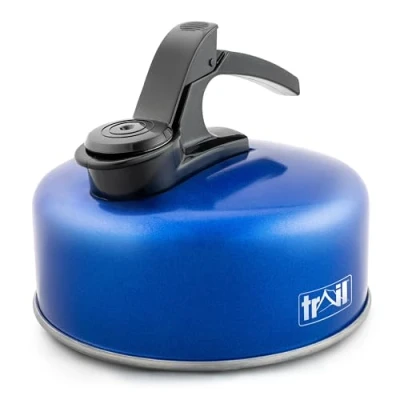 ALUMINIUM WHISTLING CAMPING KETTLE (1000ml): Enjoy a cuppa on camping trips with this 1L Aluminium Whistling Camping Kettle from Trail. Boasts a 1000ml capacity to make 4-5 cups (approx.), making it great for group and family camping. Plus, perfect for hiking, backpacking, festivals, and more. SUITABLE FOR ALL HOBS, EXCEPT INDUCTION: Portable kettle is suitable for using on all types of hob, except for induction hobs. Perfect for using on a portable gas or electric camping stove. Plus, ideal for using in campervans, motorhomes, and caravans with gas or electric hobs. Also suitable for home use. LIGHTWEIGHT ALUMINIUM CONSTRUCTION: Made from durable, lightweight aluminium with a stylish blue finish. Designed with a flat, circular base which evenly distributes heat for faster boiling. So, less time waiting for it to boil and less fuel used. Also, it's rust-resistant and easy to rinse and wipe clean when dirty. WHISTLING SPOUT WITH PUSH MECHANISM: Spout makes a loud whistling sound when the kettle has finished boiling. So, you can easily tell when it's ready without the risk of it overboiling. Features a push mechanism to easily open the spout and shaped for precise, easy pouring to safeguard from spillages. ERGONOMIC HEAT RESISTANT HANDLE: Handle ergonomically designed for a firm, comfy grip when picking up and pouring. Plus, it's heat-resistant to safely pick the kettle up, even when it's boiling hot. Kettle measures 15cm x 16cm (including handle) and weighs 0.2kg, making it compact and lightweight to carry., Weight: 0.440924524 pounds, Manufacturer: Trail Outdoor Leisure