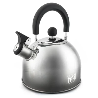 STAINLESS STEEL WHISTLING CAMPING KETTLE: Fix yourself a brew on outdoor adventures with this 2L Stainless Steel Whistling Kettle from Trail. Boasts a 2000ml capacity to make 6-8 cups (approx.), making it a perfect for group and family camping. Plus, great for fishing trips, hiking, backpacking, festivals, and more. SUITABLE FOR ALL HOBS FOR VERSATILE USE: Portable kettle is suitable for using on all hobs, including electric and induction, making it super-versatile. Perfect for using on a portable gas stove when you're camping or on a stove top in a motorhome or caravan. Plus, great for construction sites, home use, and more. POLISHED STAINLESS STEEL CONSTRUCTION: Made from durable, lightweight stainless steel with a silver polished finish for a stylish, retro look. Designed with a flat, circular base which evenly distributes heat for faster boiling. So, less time waiting and less fuel used. Also, easy to wipe clean and rinse out when dirty. WHISTLING SPOUT WITH FLIP POUR COVER: Spout makes a loud whistling sound when the kettle has finished boiling. So, you can easily tell when it's ready without the risk of it overboiling. Shaped for precise, easy pouring to safeguard from spillages with a flip pour cover to protect you from steam burns when pouring. FOLDING HEAT RESISTANT HANDLE: Kettle has a heat-resistant handle, allowing you to safely pick it up and pour a brew, even when it's boiling hot. The handle also folds down for easy, compact storage. Measures H22cm x (diameter)18cm with the handle up and H15cm x (diameter)18cm with the handle folded down.