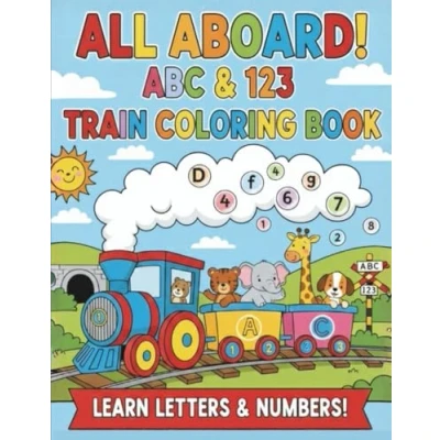Train Coloring Book For Kids: 38 Educational Designs, Learn Letters & Numbers By Coloring, Colors, And Fun