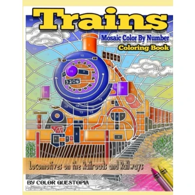 Trains Coloring Book Mosaic Color By Number Locomotives on the Railroads and Railways: Steam Engines Electric Train Art For Stress Relief Relaxation: 26 (Adult Number)