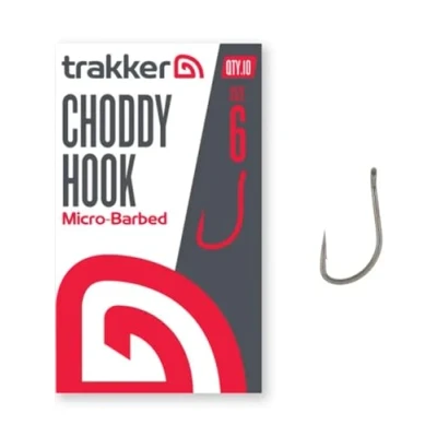 Trakker Choddy Hooks Micro Barbed - Available in multiple hook sizes - Contents: 10 pieces - Naturally aggressive chod-style hook pattern - Outward facing eye at 15 degrees - Strong steel wire guide made of forged XC 80 vanadium - Anti-reflective, PTFE protective coating - Long needle point with micro-barb The Trakker Choddy Hooks Micro Barbed hooks are available in a variety of sizes, packaged in 10 pieces. With a naturally aggressive chod-style hook pattern and an outward-facing eye, they are perfect for the chod-rig system. These hooks have a strong steel wire guide of forged XC 80 vanadium and feature an anti-reflective PTFE protective coating for reduced visibility and corrosion protection. They have a long needle point with micro-barb for efficient and safe hook setting. The Trakker Choddy Hooks Micro Barbed offer durability, reliability and good performance while fishing in various situations.