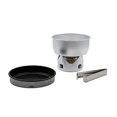 BlacksA brilliant package for lone adventurers, this cookset weighs only 330g and each piece packs inside another to take up a tiny space in your pack. It comprises a spirit burner with an aluminium 0.8 litre pan, a 15cm non-stick frying pan/lid, a handle and a windshield.