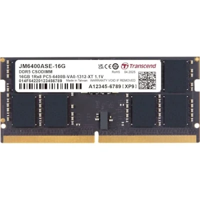 EXTREME 16GB DDR5 PERFORMANCE: Unleash peak performance with this 16GB DDR5 6400MHz SO-DIMM. Designed for enthusiasts and professionals, it delivers explosive data rates and ultra-fast system responsiveness for laptop systems. BLAZING 6400MT/s BANDWIDTH: With a massive frequency of 6400MHz, this module significantly reduces data bottlenecks, providing smooth performance for competitive gaming and high-resolution content creation. ADVANCED PMIC & 1.1V EFFICIENCY: The integrated PMIC ensures precise power distribution at a low 1.1V, maintaining extreme energy efficiency and signal integrity even at high speeds. ON-DIE ECC DATA PROTECTION: Features On-die ECC to automatically detect and fix bit errors, ensuring superior stability and preventing system crashes during high-frequency operation. PROFESSIONAL GRADE RELIABILITY: Featuring a 262-pin design, it is strictly factory-screened through rigorous environmental testing to ensure cross-platform compatibility. Backed by Transcend's limited lifetime warranty.