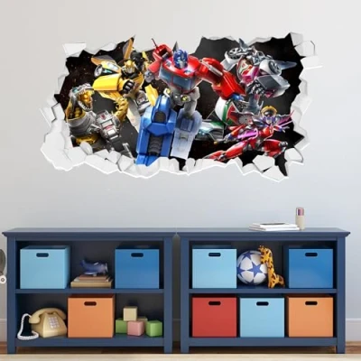 Transformers Wall Sticker Autobots Broken Decal Vinyl Art Mural Kids Bedroom Gift (90cm Width x 45cm Height)