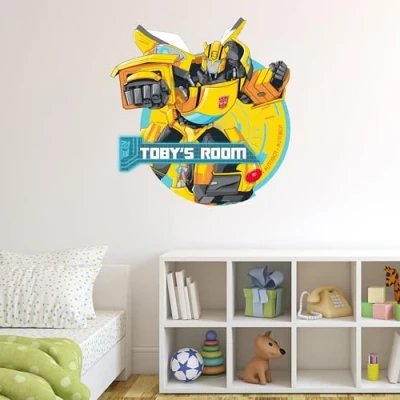 Transformers Wall Sticker Personalised Bumblebee Decal Vinyl Art Mural Kids Bedroom Gift (60cm Width x 60cm Height)
