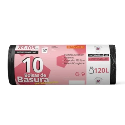 Roll Trash Bags: Measuring 85x105cm, our large trash bags are tear resistant, ideal for medium 120L buckets, bags made with reinforced material, perfect for all types of waste. 120L Trash Can - These trash bags are suitable for a 120L trash can. Its anti-drip system allows you to throw wet waste, preventing spills and stains. ANYWHERE BAGS - Our large 120 litre bags can be used for general household trash and garden, garage or community waste. Our trash bags are suitable for large trash cans of approximately 120 litres in residential, commercial, public spaces, industrial facilities, hotels...etc. Adaptable Trash Bags: These trash bags are ideal for your 120L kitchen bin, garden, premises, commerce or anywhere. Fits perfectly in your trash can. Wide variety of formats: at Ofituria we have a wide variety of waste bags in different sizes and ecological. Suitable for all types of waste bin.