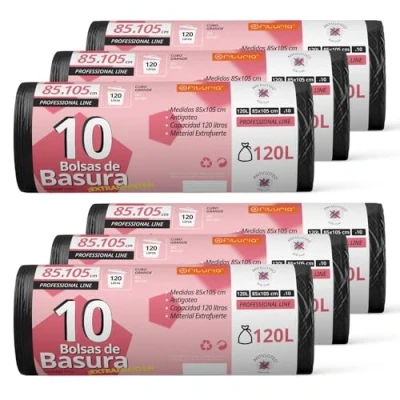 Roll Trash Bags: Measuring 85x105cm, our large trash bags are tear resistant, ideal for medium 120L buckets, bags made with reinforced material, perfect for all types of waste. 120L Trash Can - These trash bags are suitable for a 120L trash can. Its anti-drip system allows you to throw wet waste, preventing spills and stains. ANYWHERE BAGS - Our large 120 litre bags can be used for general household trash and garden, garage or community waste. Our trash bags are suitable for large waste bins of approximately 120 litres in residential, commercial areas, public spaces, industrial facilities, hotels...etc. Adaptable Trash Bags: These trash bags are ideal for your 120L kitchen bin, garden, premises, commerce or anywhere. Fits perfectly in your trash can. Wide variety of formats: at Ofituria we have a wide variety of waste bags in different sizes and ecological. Suitable for all types of waste bin.