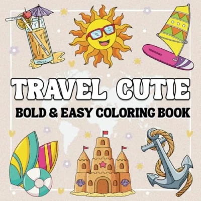 Travel Cutie bold and Easy Coloring book: 50 Fun Big Designs for Relaxation Stress Relief Featuring Simple Inspired Illustrations, ... Teens Adults. (Bold & Book)