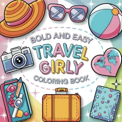 Travel Girly Colouring Book: Bold and Easy Coloring Pages Designs for Adults Kids (Bold & Coloring)
