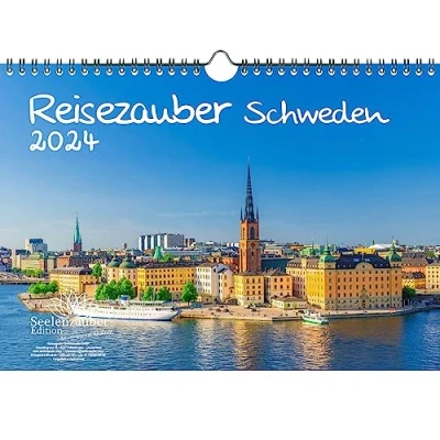 Travel Magic Sweden DIN A4 Calendar for 2024 Holidays Stockholm City and Country Seelenzauber
