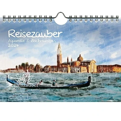 Travel Magic Watercolours DIN A5 Wall Calendar for 2024 Far Countries and Holiday Dreams Seelenzauber