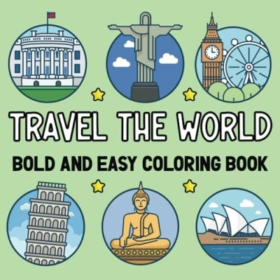 Travel The World Bold and Easy Coloring Book: Simple Big Designs Featuring Worldfamous Iconic Landmarks Around Globe