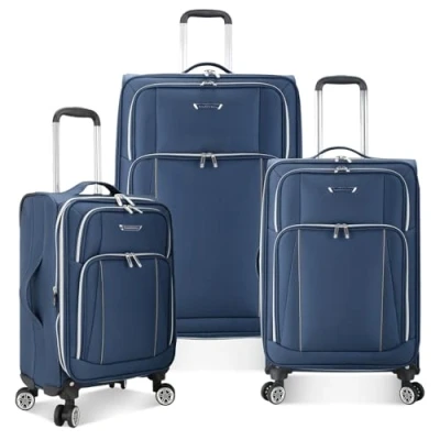 Traveler's Choice Lares Softside Expandable Luggage with Spinner Wheels, Navy, 3 Piece Set, Wheels