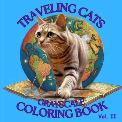 Traveling Cats Grayscale Coloring Book Vol. 2