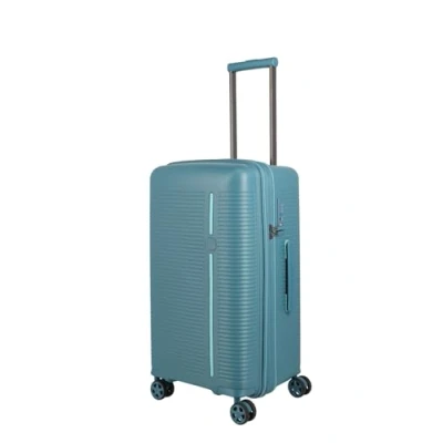 ROOMER: The hard-shell trolley in trunk format is extremely durable as it is made of sturdy polypropylene. It offers optimum capacity, but despite its high capacity it is ultra-light, very robust and not bulky luggage INTERIOR LIFE: Its spacious interior has a 1/3 to 2/3 division - this makes packing even easier to organize and even large and bulky items can be carried comfortably. The suitcase is fully lined on the inside. In addition, the elastic cross packing straps and the integrated packing walls ensure that everything is secured and not jumbled up EQUIPMENT: The integrated TSA combination lock locks the trolley securely. Despite its size, the trolley is ultra-light and, with its smooth-gliding double wheels and tilt-resistant wheelbase, is very safe and easy to move anywhere. Thanks to the integrated expansion fold, the packing volume can be easily extended SCOPE OF DELIVERY: 1 x wheeled suitcase size M Dimensions: 66 x 37 x 29 - 33 cm; volume 66 - 74 liters; weight 3.7 kg; material polypropylene; color aqua; with TSA combination lock TRAVELITE: The Hamburg-based family business has been providing travelers with lightweight, robust and functional travel and leisure luggage since 1949