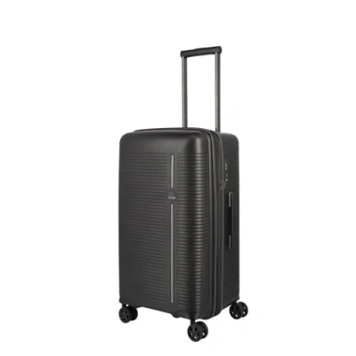 ROOMER: The hard-shell trolley in trunk format is extremely durable as it is made of sturdy polypropylene. It offers optimum capacity, but despite its high capacity it is ultra-light, very robust and not bulky luggage INTERIOR LIFE: Its spacious interior has a 1/3 to 2/3 division - this makes packing even easier to organize and even large and bulky items can be carried comfortably. The suitcase is fully lined on the inside. In addition, the elastic cross packing straps and the integrated packing walls ensure that everything is secured and not jumbled up EQUIPMENT: The integrated TSA combination lock locks the trolley securely. Despite its size, the trolley is ultra-light and, with its smooth-gliding double wheels and tilt-resistant wheelbase, is very safe and easy to move anywhere. Thanks to the integrated expansion fold, the packing volume can be easily extended SCOPE OF DELIVERY: 1 x wheeled suitcase size M Dimensions: 66 x 37 x 29 - 33 cm; volume 66 - 74 liters; weight 3.7 kg; material polypropylene; color black; with TSA combination lock TRAVELITE: The Hamburg-based family business has been providing travelers with lightweight, robust and functional travel and leisure luggage since 1949