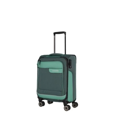 travelite 4 Wheel Suitcase Hand Luggage Soft Shell Made of Recycled Material, complies with IATA Standard, Series VIIA: Trolley Clip on Function + Edge Protection, 55 cm, 34 liters