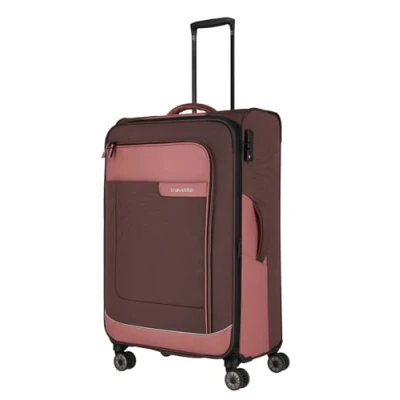 VIIA: The large suitcase is made of 100% recycled polyester for both the soft shell and the inner lining and is an uncomplicated travel companion EQUIPMENT: With four double wheels, a height-adjustable light metal frame, additional edge protection and an integrated TSA lock, the trolley case is optimally equipped INTERIOR: The two large front pockets and the well thought-out interior division with two packing straps offer plenty of storage space. Thanks to the integrated stretch pleat, the packing volume can be easily expanded SCOPE OF DELIVERY: 1 x travel suitcase size L; dimensions: 77 x 47 x 30 - 34 cm; volume 91 liters (expandable to 103 liters); weight 3.4 kg; material recycled polyester; color spring rose; with TSA lock TRAVELITE: The Hamburg-based family business has been providing travelers with lightweight, robust and functional travel and leisure luggage since 1949