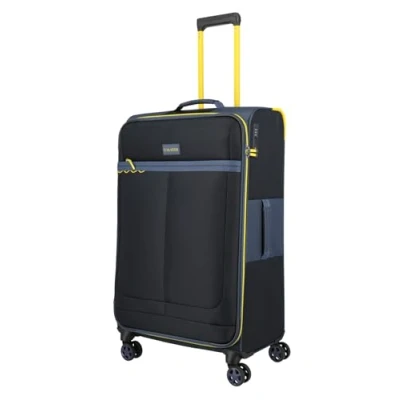 Large and expressive: with 86 litres of volume, this large travel case offers plenty of space for long trips. Thanks to its distinctive appearance, your luggage is easily recognizable on the luggage tape. Sturdy down to detail: reinforced corners and practical floor protection increase the resistance in everyday travel. So your luggage remains reliably protected even with intensive use. Convenient for traveling: four silent double wheels and integrated linkage in contrast color ensure effortless maneuvering. This rolling suitcase conveniently slides through the terminal and train station. WELCOME ORGANIZED - A large zippered pocket on the front allows for quick access. Inside, the generous main compartment with two zipped pockets, a mesh pocket in the shirt compartment and a carabiner for keys ensure optimal viewing. TRAVEL SAFE: The TSA combination lock reliably protects your contents and allows controlled opening on international flights. Ideal as checked luggage for worry-free vacation days.