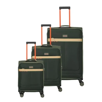 Three sizes, full flexibility: this 3-piece suitcase set includes a cabin case, a trolley size M with expansion pleat and a large travel suitcase size L. Ideal as a travel suitcase set for short trips, business trips or family holidays. Large storage space: all models have a generous main compartment with cross straps. This keeps your luggage clearly organised – from cabin luggage to check-in luggage. Robust in everyday travel: reinforced corners and integrated floor protection provide additional stability. The durable material makes this soft shell case set a reliable companion. Comfortable on the go: Four smooth double wheels and lockable telescopic poles in contrasting colour allow effortless handling. As a rolling suitcase set, the trolleys glide comfortably through terminal and train station. Thoughtful down to the details: large front zip pocket, two inner pockets with zip, mesh pocket in the shirt compartment and carabiner hook for keys provide structured order. TSA combination locks ensure safety.