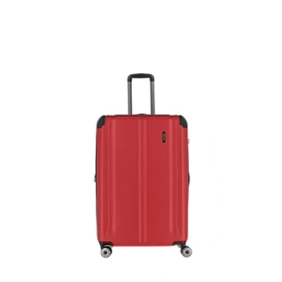 CITY: The suitcase is designed with safety in mind. The clever corner protection and the scratch-resistant surface made of robust ABS plastic protect the contents from damage INTERIOR: The lined interior is equipped with elastic packing straps and a practical packing wall. The expansion pleat allows the packing volume to be expanded by 11 liters PRACTICAL: Thanks to the 4 double castors, the trolley is maneuverable and runs very smoothly. The sturdy telescopic handle makes it easy to move. The integrated TSA-Lock combination lock locks it securely SCOPE OF DELIVERY: 1 x travel suitcase size L with integrated expansion fold and TSA lock; dimensions: 77 x 49 x 32 cm; volume 113 liters (expandable to 124 liters) - luggage for approx. 3 weeks; weight 4.5 kg; color red TRAVELITE: The Hamburg-based family business has been providing travelers with lightweight, robust and functional leisure and travel luggage since 1949