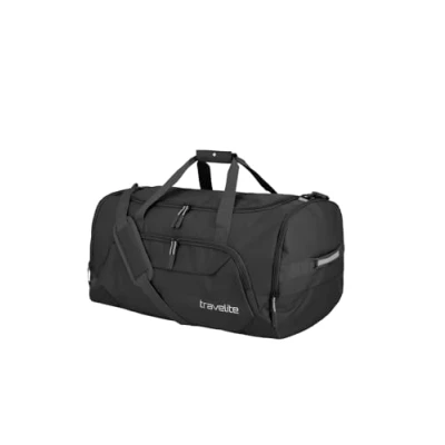 KICK OFF: Designed for sports and leisure, the bag is made from robust polyester and features two comfortable carrying handles and a detachable and adjustable shoulder strap INTERIOR: The main compartment with 2-way zipper has a large opening for easy packing. In addition, three large outer pockets offer further storage space, one of which can be used as a shoe or wet compartment PRACTICAL: Thanks to its special weave, the material of the bag is light, extremely robust and resistant. It is easy to clean and can be folded up to save space SCOPE OF DELIVERY: 1 x travel bag / sports bag large; size L; dimensions 60 x 34 x 36 cm; volume 73 liters - luggage for approx. 1 week; weight 0.9 kg; material: polyester; color: black TRAVELITE: The Hamburg-based family business has been providing travelers with lightweight, robust and functional travel and leisure luggage since 1949