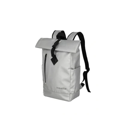 Travelite Rolltop Backpack, Waterproof, Bicycle Leisure backpack with closure & Reflectors, Basics, 48 cm, 19 Litres, silver, Rucksack Waterproof rollup