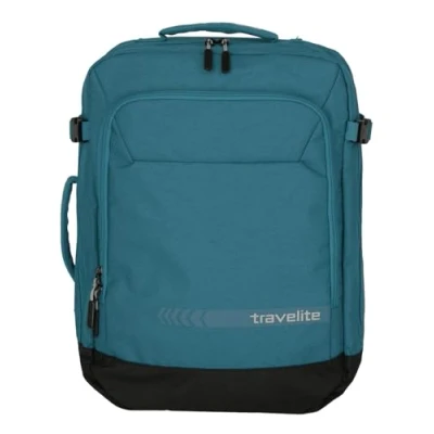KICK OFF: Designed for sports and leisure, the backpack is a multi-talent: its adjustable shoulder straps can be stowed away in a separate compartment so that it can also be used as a bag INTERIOR LIFE: This leisure backpack offers plenty of storage space with a large main compartment, a large zippered outer pocket and a zippered compartment. Packing straps inside keep laptop or clothing in place PRACTICAL: The lightweight polyester backpack is extremely robust and durable and is easy to clean. The two padded and adjustable shoulder straps make it comfortable to carry SCOPE OF DELIVERY: 1 x carry-on bag for airplane; dimensions 50 x 37 x 20 cm (complies with IATA on-board baggage regulations); volume 35 liters; weight 0.9 kg; color: petrol TRAVELITE: The Hamburg-based family business has been providing travelers with lightweight, robust and functional leisure and travel luggage since 1949