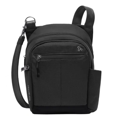 Mesh expansion pocket holds a water bottle Front and rear zippered pockets Front organizer compartment with RFID blocking pocket, and zippered mesh wall pocket Tethered key clip with LED light Roomy main compartment