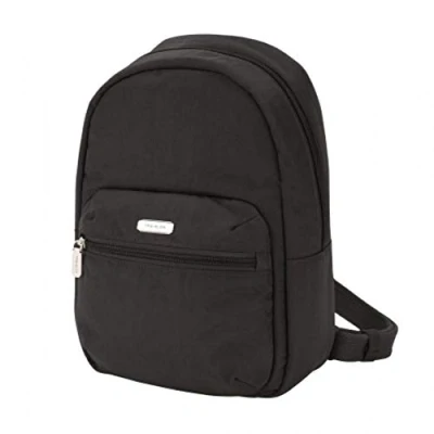 Anti-Theft features include slash resistant mesh body panels and straps, locking compartments, along with RFID blocking interior pockets Spacious Main compertment has wide open for maximum access Interior features a business accessory organizer, zippered pocket, and slip pocket Covenient deep front exterior zipper pocket for carrying essentials. Adjustable soft webbing shoulder straps Product Size: 8"W x 12"H x 4.5"D, Weight 0.85 lbs.