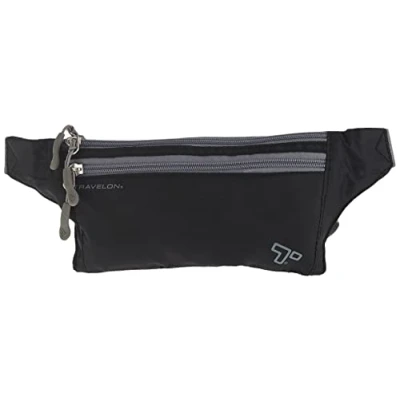 2 front zip pockets, 1 rear zip pocket Center compartment has 3 wall pockets Lightweight, Tapered design provides slim profile, Size 8.25"W x 4.5"H x 0.75"D, Weight 0.17 Lbs. Material Polyester Ripstop, Circumference up to 50"