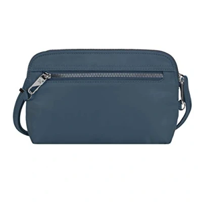 5-POINT ANTI-THEFT security system WEAR IT 2 WAYS - as a clutch/wristlet or a crossbody bag ADJUSTABLE AND REMOVABLE SHOULDER STRAP MAIN COMPARTMENT has a slip pocket FRONT ZIPPERED COMPARTMENT and rear quick access slip pocket