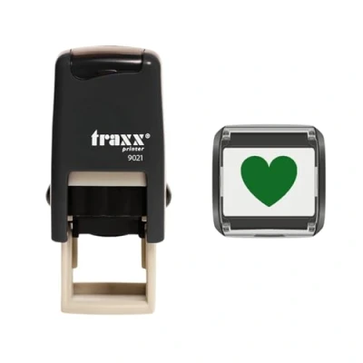 Traxx 9021 Loyalty Card Self Inking Rubber Stamp Business *Green Heart Design*