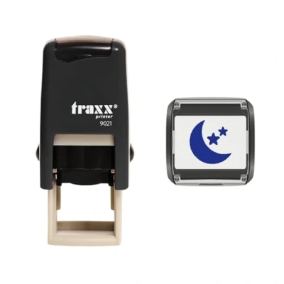 Self-inking no need for a separate pad Image size 14 x 14mm Replacement inkpads available Black, Blue, Red, Green or Purple Ink colours available Comes with Blue Ink with a Moon and Stars Design
