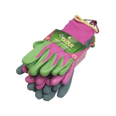 General description Pack of three mixed gardening gloves designed for general gardening tasks. These gloves provide comfort, dexterity, and protection, making them ideal for various gardening activities. Each glove features an aluminium carabiner clip for easy attachment to your belt or garden bag, ensuring you never lose them again. Technical specifications Includes three pairs of gloves: Pair 1: Polyester gloves with foam latex coating Pair 2: Polyester gloves with smooth nitrile coating Pair 3: Extra fine polyester gloves with honeycomb textured latex coating for extra grip Sizes available: Small (7cm/2.76") and Medium (8cm/3.15") Other information Part of the ClipGlove range, featuring handy aluminium carabiner clips. To find the right size, measure the width of your four fingers when held together.