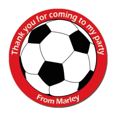 Treasured Forever 24 x Personalised Football Birthday Stickers For Party Thank You Sweet Cone Bags (Red)