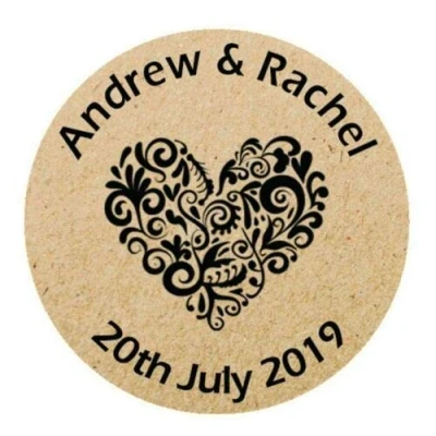35 Personalised Wedding Round Stickers.Printed on A4 Sheets - Can be personalised with two names (first names only) and date. Lovely finishing touch to your presents. A Lovely way to make your event that extra bit special! Individual sticker size is approximately 3.7 cm. Good quality, professionally designed labels, to make your a little more MAGICAL! Personalisation Information required: Name of the couple & Date. Each sticker sheet (35 stickers) will be printed with the SAME wording so if you require more than one lot of wording please purchase another sheet. Use 'Customize Now' button, add the personalization you require. Select 'Add to Basket' and then Checkout.