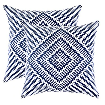 TreeWool Kaleidoscope Accent Set of 2 Cotton Cushion Covers (40 x 40 cm, Navy Blue & White)