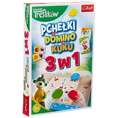 Set of 3 classic games for the whole family - Domino, Quiver and Kuku - all in a beautifully illustrated glow Games with many game variants for 2-4 players, suitable for children aged 5 and over They train dexterity and goal, learn patience, decisions and harmonious competition, and promote family bonds and everything in the crowd of fun action return Includes 24 small fleas, 4 large fleas, 21 domino building blocks and 28 cards, all playing components are equipped with care to ensure a long service life and many hours of entertainment The popular fairy tale figures easily bring your child into the game world, Manufacturer: Trefl