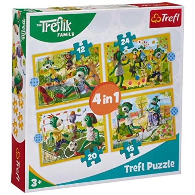 The puzzle includes 4 different designs - for even more fun and joy! It stimulates world curiosity and imagination, while combining learning and playing well. The Treflik family puzzle takes the youngest ones on a wonderful journey into a world full of magic. Thanks to the different number of parts, both very small and a little older children can play with it. A perfect gift for any child. Made from safe, high quality and natural materials. After assembling the puzzle game, a picture with the dimensions 200 x 195 mm is created. Finished puzzles can be fixed and hung on the wall with the special puzzle adhesive from Trefl - the puzzle glue is sold separately., Manufacturer: Trefl