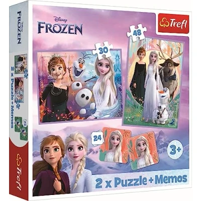 2 separate puzzles with different difficulty levels: 30 and 48 pieces and memory game in one package allow for longer play, ideal for young and older children. Puzzle and play memory with your favourite characters from the Frozen 2 TV series The stacking puzzle stimulates curiosity and imagination and combines learning and fun in a pleasant way Vibrant colours and interesting illustrations encourage children to play, and the large size of the elements makes it easier to assemble the picture A perfect gift for any child. Made from safe, high-quality natural materials The finished puzzles can be glued to cardboard and hung on the wall - special Trefl puzzle glue is sold separately, Manufacturer: Trefl
