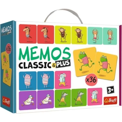 Memos Maxi Classic & Plus Movement & Sounds is a memory game for toddlers that offers different play options with different levels of difficulty Find the couples among the 36 colourful animal pictures and mimic their sounds and sounds! The game is intended for children aged 3 and over. Trains your child's memory and perception ability The game contains 36 cards with pictures and instructions with game suggestions The game is a perfect gift for a toddler for birthday, holiday or children's day, Manufacturer: Trefl