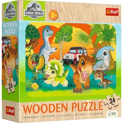 Wyjątkowe WOODEN PUZZLE 24 od Trefl – drewniana układanka stworzona z myślą o najmłodszych. After assembly, the image of the dinosaurs from the world of Jurassic Park will be created Large pieces – perfect for toddlers, the rounded safety puzzle edges and the decorative pattern on the reverse will bring you even more fun when stacking The puzzles are made of safe, high-quality natural materials, FSC certified and packed in a paper bag and environmentally friendly cardboard packaging Jigsaw puzzles stimulate the curiosity of the world and imagination, combining learning and fun, quiets the child, exercise concentration, cultivate patience and perceptivity, builds confidence Perfect gift for children aged 3 and over. Other WOODEN puzzles are also available for sale - for older children and adults, Manufacturer: Trefl