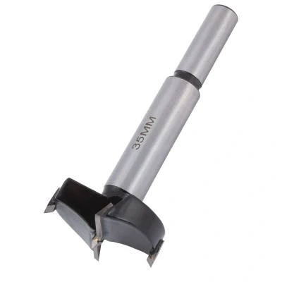 CAB/BIT/35TC - 35mm TCT Concealed Hinge Jig Machine Bit A replacement 35mm precision machine bit for the Trend CAB/JIG/B Concealed Cabinet Hinge Jig. TCT Tipped for a precision finish and long bit life. Cutting Spurs leave a cleaner finished edge, especially in man-made materials such as MFC and MDF. Centre Point for improved cutting accuracy. Depth-Stop Shoulder to prevent over-drilling. Diameter 35mm Shank 9.5mm Overall length 90mm