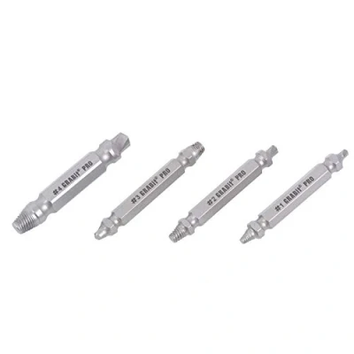 VERSATILE SCREW EXTRACTION: A 4-piece set designed to extract damaged screws and bolts, ranging from 4mm to 8mm diameter, from various materials including wood, metal and plastic. HIGH SPEED STEEL CONSTRUCTION: Crafted from High Speed Steel, this set can remove screws of any alloy, including soft brass, ensuring high performance and durability for all your DIY needs. WINSLOW TIP & SERRATED END: Each double-ended bit features a self-centring Winslow tip and a serrated extracting end, enabling greater torque and easier removal on stubborn screws. IDEAL FOR VARIOUS SIZES: This set caters to a wide range of screw sizes from Nos. 4 - 24 and broken bolts from size M4 - M12, making it a must-have for any toolbox. HEX SHOULDER FEATURE: Each bit comes with a hex shoulder to aid in the removal of jammed screws or bolts, providing extra grip and leverage, enhancing your tool efficiency., Manufacturer: Trend