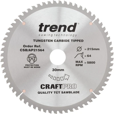 The Trend CSB/AP21564 Craft Saw Blade is specifically engineered for delivering clean and accurate cuts in aluminium, plastics, and non-ferrous metals. With a diameter of 215mm and a bore size of 30mm, this high-performance blade is designed to excel in various applications, including plumbing, metalwork, fabricating extrusions, fascias, soffits, and sheet materials.