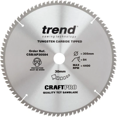 Trend Aluminium & Plastic Circular Saw Blade, 305mm Diameter, 30mm Bore, 84 Teeth, TCT, 3mm Kerf, 6 Hook, CSB/AP30584