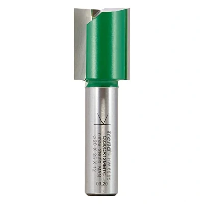 TREND C030CX12MMTC Double Flute Cutter 20mm Diameter x 25mm Cut 12mm Shank Suitable for Applications Such as Engraving, Grooving, Folding and Flat Mortising